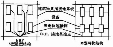 (4)等電位保護。電子設備的機柜機架、金屬外殼、金屬管槽、屏蔽線纜外層、信息設備的防靜電接地端、安全保護接地端、浪涌保護接地端等,在同等電位連接網(wǎng)絡的接地端子相連接時,均需采用最短的距離。控制系統(tǒng)的等電位連接,通常分為“S型星型結(jié)構”以及“M型網(wǎng)狀結(jié)構兩種”,其中在控制系統(tǒng)中設備較少或者進行局部控制時通常采用S型星型結(jié)構,而在相對較大的控制系統(tǒng)中則采用M型的網(wǎng)狀結(jié)構。等電位連接的基本方式如圖3所示。