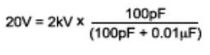對于一個給定的去耦電容,ESD測試中初始電壓的變化遵循電荷守恒原理。例如,使用一個0.01μF去耦電容,2kV HBM測試電壓可以達(dá)到20V: