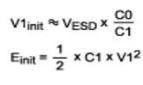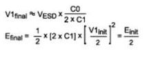4. 能夠在瞬間導(dǎo)致IC損壞的能量相當(dāng)于微焦級,有外部電源去耦電容時,考慮這一點(diǎn)非常重要,從電源電容(C1)傳遞到IC的能量是: