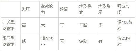 開關型防雷器和限壓型防雷器的區別