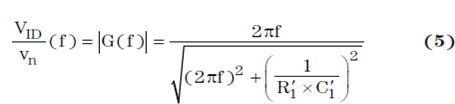 將差動網絡轉換為單端網絡(請參見圖 4),簡化了 G (f) 的推導過程,但卻要求 C′1 = 2C1,R′1= R1/2,C′2 = 2C2,以及 R′2 = R2/2。