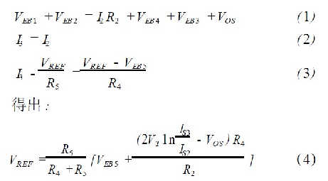 從式(4)中可以看出2 ln ( IS3 / IS2 ) VT相對于ln( IS3 / IS2 )VT受失調(diào)電壓VOS的影響明顯減少,即級連二極管的采用使基準(zhǔn)電壓受運(yùn)放失調(diào)影響減少。