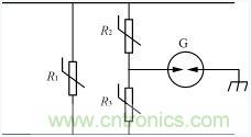 圖4是氣體放電管和壓敏電阻組合構成的浪涌抑制電路。由于壓敏電阻有一致命缺點:具有不穩定的漏電流,性能較差的壓敏電阻使用一段時間后,因漏電流變大可 能會發熱自爆。為解決這一問題在壓敏電阻之間串入氣體放電管。但這又帶來了缺點就是反應時間為各器件的反應時間之和。例如壓敏電阻的反應時間為25ns, 氣體放電管的反應時間為100ns,則圖4的R2,G,R3的反應時間為150ns,為改善反應時間加入R1壓敏電阻,這樣可使反應時間為25ns。