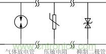 2)氣體放電管和壓敏電阻組合構成的抑制電路