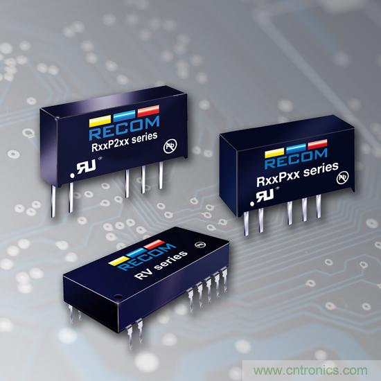 除了眾多隔離功能的轉換器之外,RECOM提供1W和2W高隔離轉換器產品——RK(4000VDC/1s),RP(5200VDC/1s)和RV(6000VDC/1s)。這些轉換器已經廣泛使用在IGBT應用中。RECOM推出的最新系列是RxxPxx和RxxP2xx系列,它們各自有6400VDC和8000VDC/1s隔離電壓。它們的額定功率為1W或2W,也是加強型隔離轉換器,小巧的SIP7封裝。RV系列中的2W版本,現在也提供DIP24封裝,可方便安裝到現有的設計方案。因為效率接近88%,工作溫度可以高達+85°C,所以無須主動冷卻或降額使用。
