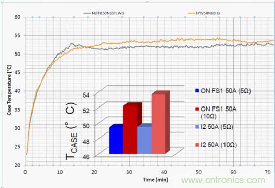 安森美半導(dǎo)體的客戶已成功使用其場(chǎng)截止型第一代IGBTNGTB50N60FLWG開發(fā)出了各種應(yīng)用,如功率10 千伏安、功率因數(shù)0.9的不間斷電源,以及采用半橋諧振拓?fù)浣Y(jié)構(gòu)的1450瓦廚用電爐。客戶認(rèn)為,安森美半導(dǎo)體場(chǎng)截止型第一代IGBT的性能達(dá)到了市場(chǎng)上最好的性能;其IGBT在電磁爐上的溫升低于其它2款I(lǐng)GBT。
