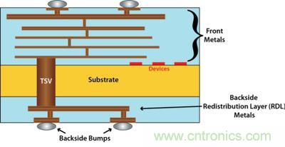 2.5維/三維流程的電網(wǎng)分析工具還必須考慮垂直整合所需的更多“對象”,如背面凸塊(microbumps)和背面金屬層(圖1)。三維結(jié)構(gòu)中的背面金屬層呈45度角,而不是正面金屬層常用的90度,這將對功率分析模型產(chǎn)生影響。對于全三維系統(tǒng),電網(wǎng)分析工具需要給正面和背面金屬之間的硅穿孔(TSV)定義準確的模型,而對于2.5維系統(tǒng),電網(wǎng)分析工具必須能夠模擬只包含金屬(下面沒有器件)的鈍化基板夾層(interposer)。
