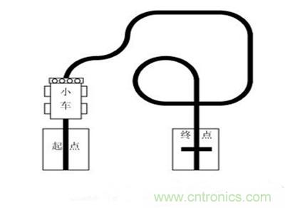 所謂小車循跡,就是在白紙上畫出黑色的線條,稱為賽道;小車沿著賽道按要求(可以做一些指定的任務)行進時,能自動識別賽道并按賽道線條行走,稱為小車循跡。如圖1所示,該賽道是2010年全國職業院校大學生職業技能競賽月球車競賽項目湖南賽區賽道圖。