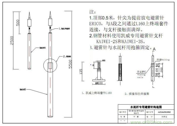 此設(shè)計(jì)圖適用于線路鐵塔(等級10KV-500KV),在個(gè)別鐵塔無法安裝避雷線(地線)的時(shí)候更是唯一的防雷擊解決辦法。我公司與電力設(shè)計(jì)院公司聯(lián)合研發(fā)設(shè)計(jì)的此種保護(hù)方式在一些常規(guī)條件下無法安裝避雷地線的情況下得到大量使用,實(shí)踐證明了此種設(shè)計(jì)的科學(xué)性和安全性。