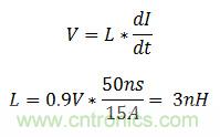 用電子負(fù)載測(cè)試電源的瞬態(tài)響應(yīng)很常見(jiàn)。對(duì)許多系統(tǒng)軌(如服務(wù)器的3.3V或5V總線)而言,電子負(fù)載很容易配置為在2-10A/us的范圍內(nèi)汲入電流的模式。但是,內(nèi)核電壓可能需要轉(zhuǎn)換速率比這些水平高兩個(gè)數(shù)量級(jí)。高轉(zhuǎn)換速率測(cè)試中的一個(gè)主要限制因素是負(fù)載路徑中的寄生電感。要以300A/us的速率為0.9V輸出轉(zhuǎn)換15A的電流,公式1計(jì)算出的最高電感是3nH。作為參考,成圈狀通過(guò)電流探頭的16級(jí)導(dǎo)線的1英寸片可將20nH的電感添加到負(fù)載路徑中。很明顯,需要另一種電流汲入方法。