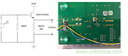 大多數(shù)電源評(píng)估模塊可以很容易地被配置為快速汲入電流的模式。圖1舉例說(shuō)明了分立金屬氧化物半導(dǎo)體場(chǎng)效應(yīng)晶體管(MOSFET)加可直接從輸出平面焊接到接地裝置的檢測(cè)