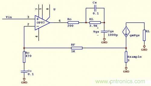 但Ro是運(yùn)放內(nèi)部電阻,無(wú)法操作,因此在Ro后添加一只電阻Rs,并將Cs與Rs并聯(lián)。