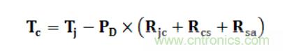 其中Tc為芯片的外殼溫度,PD為芯片在該環(huán)境中的耗散功率,Tj表示芯片的結(jié)點(diǎn)溫度,目前大多數(shù)芯片的結(jié)點(diǎn)溫度為150℃,Rjc表示芯片內(nèi)部至外殼的熱阻,Rcs表示外殼至散熱片的熱阻,Rsa表示散熱片到空氣的熱阻,一般功率器件用Rjc進(jìn)行計(jì)算即可。