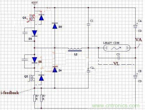 三級的效率其實不是問題。調試得當 91是沒太大問題的。可問題不在效率這里。換向鋁電解的問題,的確是個問題,不然CCI也不會出如此復雜的波形來控制。但這個問題,根本上來說,是可解決的,只是控制電路復雜一些而已。三級電路如果降壓為母線端,則需要高壓驅動,驅動麻煩。當然這樣的結果是取樣方便。如果在地端,則取樣不便。全橋不可控狀態。