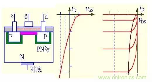 (1) VGS=0時,不管VDS極性如何,其中總有一個PN結反偏,所以不存在導電溝道。