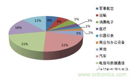 中國連接器市場已經占據全球30%左右連接器市場,但是我國連接器還主要以中低端為主,高端連接器占比較低,從全球來看,汽車連接器是最大應用市場。根據統計,汽車市場應用是全球連接器最大的應用市長,占比達到 22.2%。其次是電信與數據通信,約有 21%,另外計算機與工業分別占比達到 16%、12%。