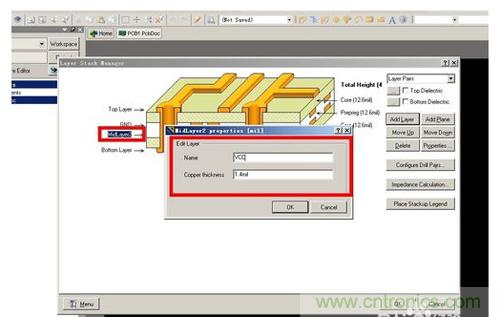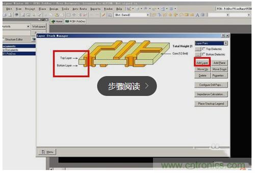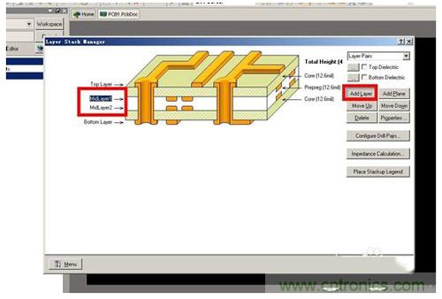 可以看到目前只有兩個(gè)層Top Layer 和 Bottom Layer。可以看見右側(cè)有Add Layer選項(xiàng)。