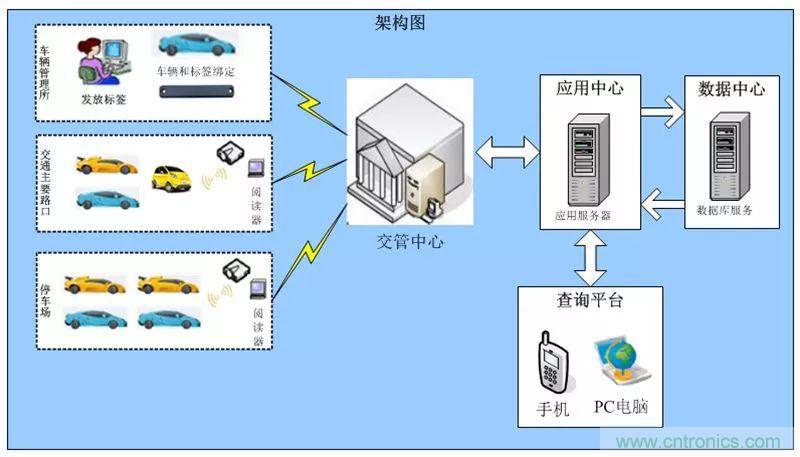 正是由于電子車牌相比傳統車牌有這么多的優勢和特點,可以預見在不久的將來,機動車輛將會逐步使用帶有電子標簽的電子車牌替代目前的傳統車牌,這樣一來,從車輛前端的電子車牌,到后端的車牌識別、數據傳輸、車輛管理、數據存儲、終端查詢等整個平臺的構建和發展前景都是十分廣闊的,圖2是整個平臺組成架構的示意圖。