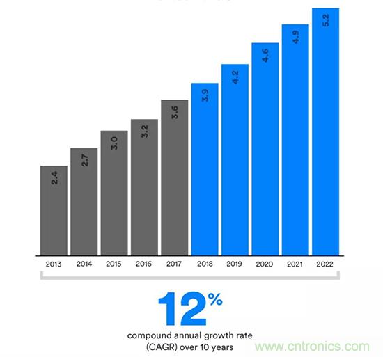 【導讀】與PC時代不同,目前移動通信大潮席卷業(yè)界,手機主宰了半導體產(chǎn)業(yè)鏈,從2017年開始,手機用元器件的供需直接影響整個電子產(chǎn)業(yè)鏈,手機里的存儲器件、CMOS傳感器等吃掉了大部分晶圓產(chǎn)能,導致其他領域元器件供應短缺,讓很多業(yè)者飽受缺貨之苦,但手機時代終將會跟PC一樣成為過去,手機浪潮過后,哪些芯片需求會暴漲呢?我們看看東芝公司帶來的分析。