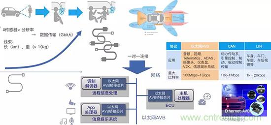 他表示隨著自動駕駛和車聯(lián)網(wǎng)的發(fā)展,汽車搭載越來越多的傳感器和越來越多的攝像頭。這帶來的挑戰(zhàn)就是數(shù)據(jù)傳輸需求越來越高。為了提升數(shù)據(jù)傳輸,車內(nèi)線纜會長達到幾公里重達幾十公斤,為了簡化連接,汽車行業(yè)推出了新的車專用以太網(wǎng),它可與現(xiàn)有的車載用車身數(shù)據(jù)通訊系統(tǒng)通信,所以激發(fā)了車載以太網(wǎng)橋接芯片的需求。