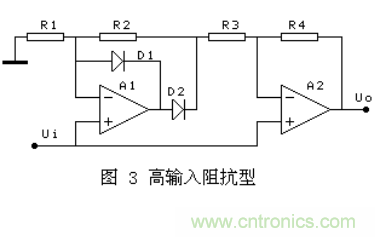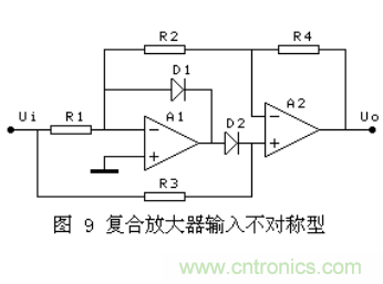 其它幾種,有的在D2導通的半周內,通過A2的復合實現A1的負反饋,對有些運放會出現自激. 有的兩個半波的輸入阻抗不相等,對信號源要求較高。