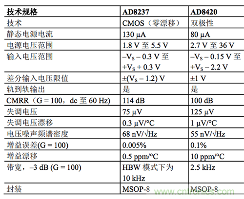 表 2 是對兩款儀表放大器進行了比較。都使用了最小和最大規(guī)格。有關更多詳情和最新信息,請參見產品數據手冊。