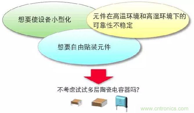 選擇多層陶瓷電容器,元件的小型化、元件貼裝位置自由度的提高使基板具有小型化和由于優越的耐濕性,而減少防濕對策的優勢。