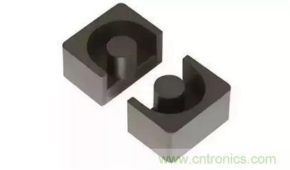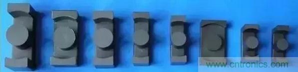 這些類型的磁心結構介于E型和罐型之間。和E型磁芯一樣,他們能提供足夠的空間供大截面的引線引出(適合現在開關電源低壓大電流的趨勢);這些形狀的磁心散熱也非常好;有于中心柱為圓柱形,與相同截面的長方體相比,單匝的繞組的長度縮短了11%,這樣致使銅損也降低了11%,同時使的磁心能提供一個更高的輸出功率;同時中心柱為圓柱形,與長方體中心柱相比,也避免了由于長方體棱角在繞制時破壞繞組線材絕緣的隱患。