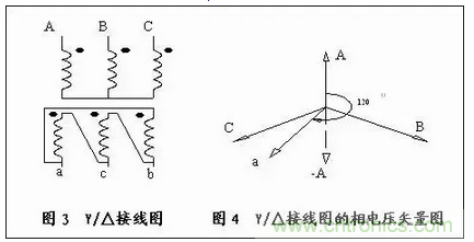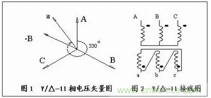 2、用相電壓矢量圖來識別Y/Δ 接法的聯(lián)接組別
