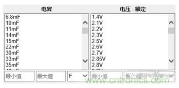 想了解一般市場上超級電容產品“電容值”及“額定電壓”的可選范圍,可在Digi-Key 網站中查詢,相關數(shù)值會在產品的特性選項中顯示,如下圖4所示。