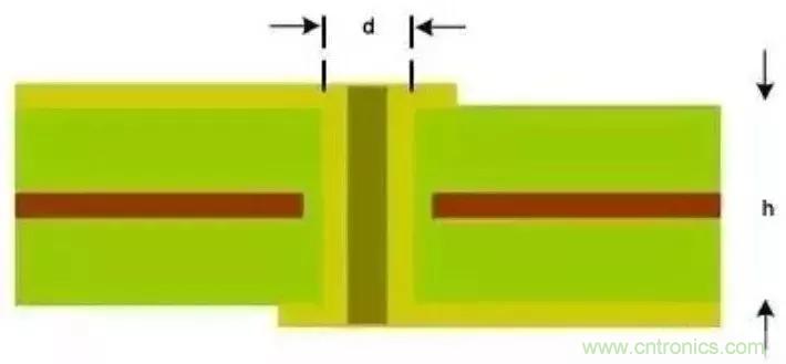 圖5:PCB橫截面用于估算寄生影響的過(guò)孔結(jié)構(gòu)