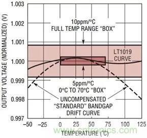 例如,指定為100ppm/°C的基準電壓源傾向于在任何溫度范圍內都有相當好的線性度,因為元件不匹配引起的漂移完全掩蓋了其固有非線性。相反,指定為5ppm/°C的基準電壓源,其溫度漂移將以非線性為主。