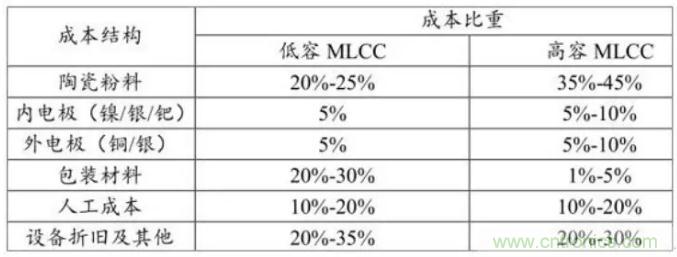 圖4 多層陶瓷電容器的成本結(jié)構(gòu)