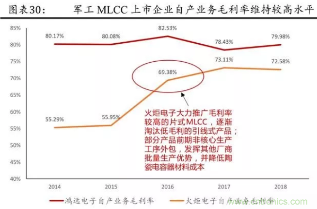 軍工 MLCC 上市企業(yè)自產(chǎn)自銷(xiāo)業(yè)務(wù)的毛利率有望維持較高水平。
