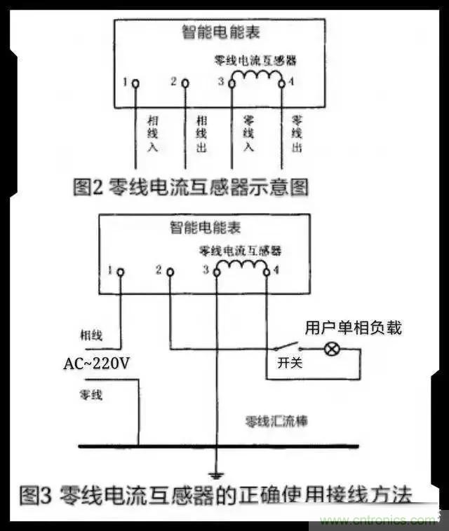 這種智能計量裝置采用微處理器和專門用于電能計量的芯片。它具有功能完善、計量精度高等等特點。而對于單相220V的用電用戶來說,現在的智能電能表在其內部結構中都已經安裝了“零線電流互感器”。為了提高智能電能表的技術防護能力,在電源進、出相線短接的情況下,它能夠檢測流過電能表的零線回路中的電流。而且國家電網在技術規范要求中明確提出,所有的智能電能表都必須安裝有零線電流互感器測量、記錄的功能。請看下圖所示