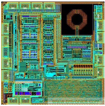 射頻無線模塊或者獨立的射頻芯片,從電路設(shè)計到版圖設(shè)計,完全屬于全定制設(shè)計方式。設(shè)計人員在標(biāo)準(zhǔn)版圖設(shè)計和半定制版圖設(shè)計的基礎(chǔ)上,不斷開發(fā)出專用的芯片射頻產(chǎn)品。圖6為某射頻公司自行設(shè)計的5GHz通信產(chǎn)品全定制版圖案例,即版圖為全手工設(shè)計,芯片制造采用180nm射頻工藝,其數(shù)據(jù)率達到5Gbps。