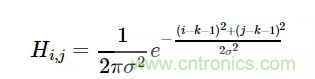 對(duì)于窗口模板的大小為(2k+1)×(2k+1),模板中各個(gè)元素值的計(jì)算公式如下: