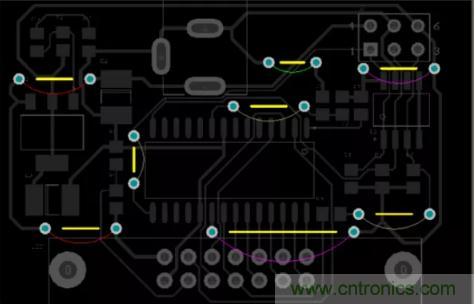 如下圖,這就是一個通過跳線設計器,來實現(xiàn)的路由在一邊的板。