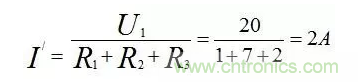 【例5】如圖所示電路的電流I=2A,試確定電阻R的值。
