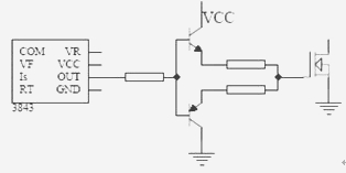 因此得出結論是,單靠提高開關速度來提高DC-DC轉換器效率是不可取的。于是,如何選擇合適的驅動電路參數、不斷地優化驅動電路的設計,在提高DC-DC轉換器的EMC性能的同時又保證總效率等其他參數指標不受到大的影響,是近年來發展的一個新方向。例如,在驅動電路中保留驅動電阻的同時加入推挽電路以代替二極管,這樣就可以方便地分別調節控制開和關的速度,再權衡EMC性能和總效率指標的關系,以達到最理想的效果。如圖3所示。
