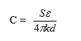 (7)上式中,電容C的單位為法拉,ε為介電常數(shù)(在真空中為1),S為帶電物體與參照物體之間電力線互相照射的面積(與電場(chǎng)垂直,單位米2),在國際單位制中k = 9×109牛頓•米2/庫侖2,d為帶電物體到參照物的有效距離(單位米)。