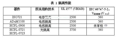 UL1577、IEC60747-5-2、IEC61010-1和CSA測試了ISO72x系列隔離性能。表1顯示了說明該三種隔離技術(shù)的這五個器件的隔離性能。