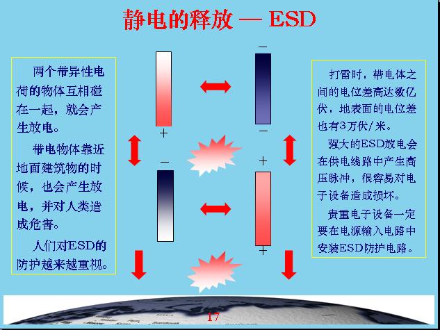 剛才跟大家介紹一下什么叫雷電和ESD,ESD就是靜電放電,雷電也屬于靜電放電,所以大家都知道ESD的危害性有多大。地球每秒鐘大概就有100多次閃電,每閃電一次能量就可以提供100w的燈泡供我們用3個月,在雨季平均每6分鐘就有一個人被雷電擊中,中國還不是受雷電受害最集中的地區(qū),在非洲這些地區(qū)受雷擊更嚴(yán)重,上海電視塔平均每年要遭受33次大的雷擊,今年4月13日上海電視臺電子設(shè)備遭受不同程度的雷擊,天線站玻璃鋼都起火了,變成一個大火球燒起來了。還有一次是1992年在北京國家氣象中心也受到雷擊,損失了2000多萬元。在全世界每年受雷電擊壞的設(shè)備都是以千萬為單位,每年遭受的損失都是上千億。我們現(xiàn)在使用的電子設(shè)備價格越來越高,對防雷的要求也越來越高。