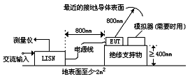 在輻射試驗(yàn)場(chǎng)上測(cè)量時(shí),EUT應(yīng)處于和輻射測(cè)量相同的狀態(tài)下,且EUT應(yīng)處在比其邊界至少擴(kuò)展O.5m或最小尺寸為2m×2m的金屬接地平板上。