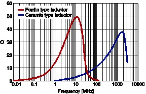 Q值因頻率和基材不同而變化。鐵氧體基材不可用于幾百MHz以上的頻率范圍,應采用陶瓷介質。