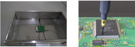 表面掃描法通過測量集成電路表面電場和磁場的方法來描述集成電路的電磁發(fā)射特性。該方法的測量頻率范圍可達(dá)10MHz—3GHz,測量采用電場探頭或磁場探頭按一定順序掃過集成電路表面,由接收機(jī)將相應(yīng)的測量結(jié)果依次傳送給計(jì)算機(jī)處理。測試結(jié)果的準(zhǔn)確性與電場或磁場探頭的特性和探頭定位裝置的精度有關(guān)。該方法可用于探測集成電路芯片上不同部位的電磁發(fā)射分布情況,適用于對集成電路的不同設(shè)計(jì)方案的電磁發(fā)射特性的比較。