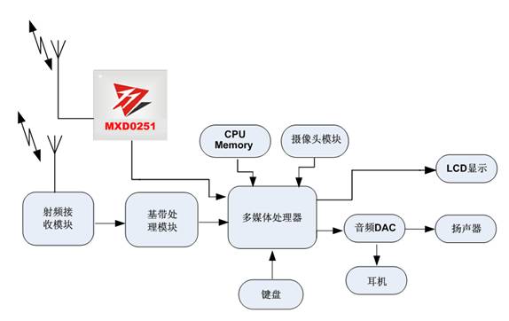 圖1:基于MXD0251的CMMB移動(dòng)數(shù)字電視終端系統(tǒng)架構(gòu)。