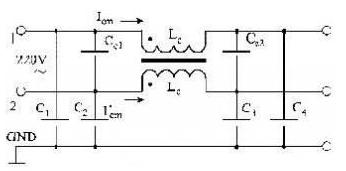 圖2 帶共模扼流圈的濾波器