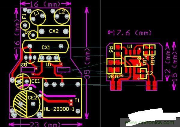 上PCB,對于EMI來說,走線就是靈魂。由于板子要內置,有尺寸要求,并且還要有可控硅調光功能,由于節(jié)省了很多EMI元件,導致明顯超標。