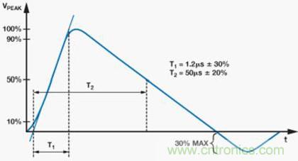 圖3:IEC 61000-4-5電涌1.2/50 μs波形